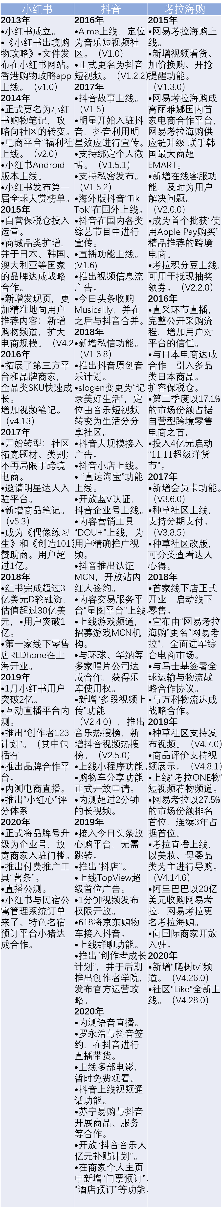 小红书和竞品发展历程